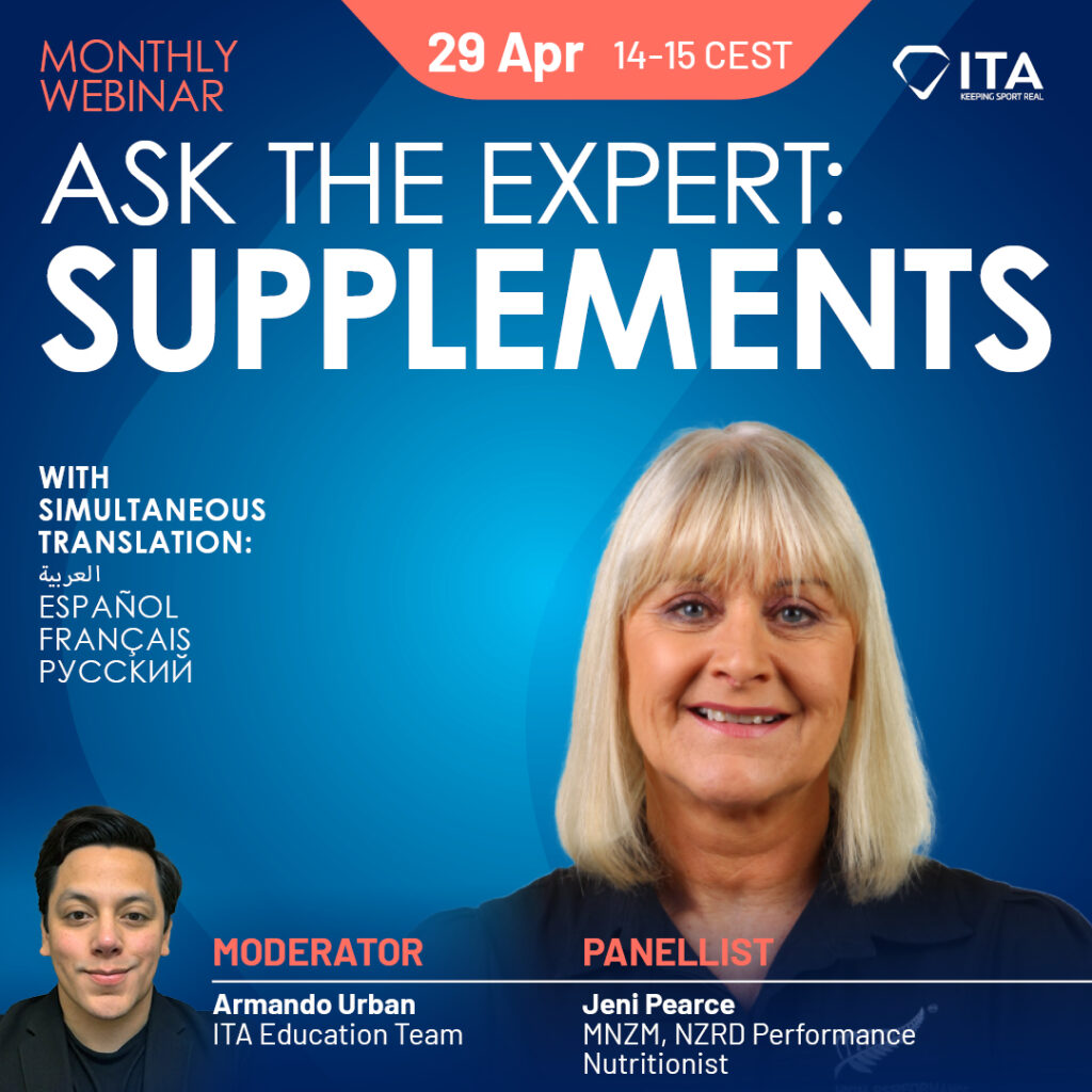 ITA April monthly webinar is dedicated to “Ask the Expert: Supplements”.